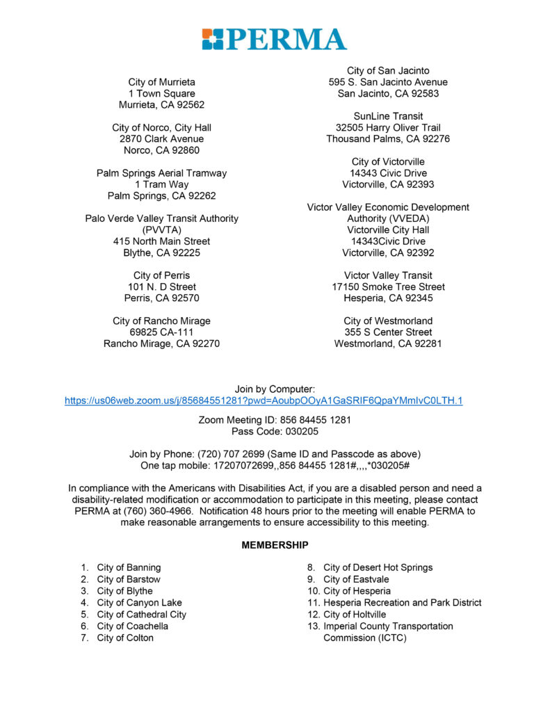PERMA Board Meeting